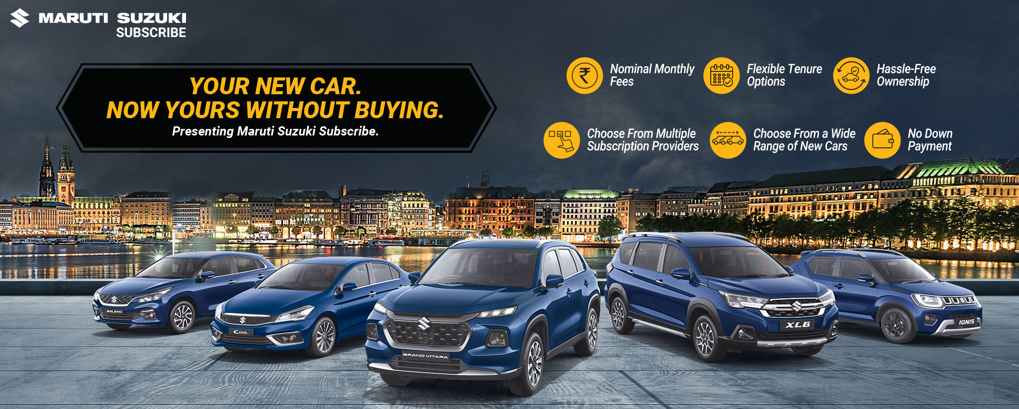 Located in Cuttack, Jyote Motors offers a plethora of options of Nexa cars for Maruti Suzuki Subscribe. You can choose your desired Maruti Suzuki car and drive it home at nominal monthly fees for a variety of flexible tenure periods. Whether you prefer Hatchback, Sedan, SUV or even MUV you are sure to find it at Jyote Motors, with an easy Maruti Suzuki Subscribe plan.